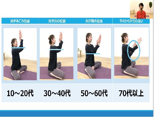 まずはご自分のカラダを知ることから始めましょう。「しゃがむ」「反らす」「腕を上げる」といった動きでカラダの柔軟性からカラダ年齢をチェックします。